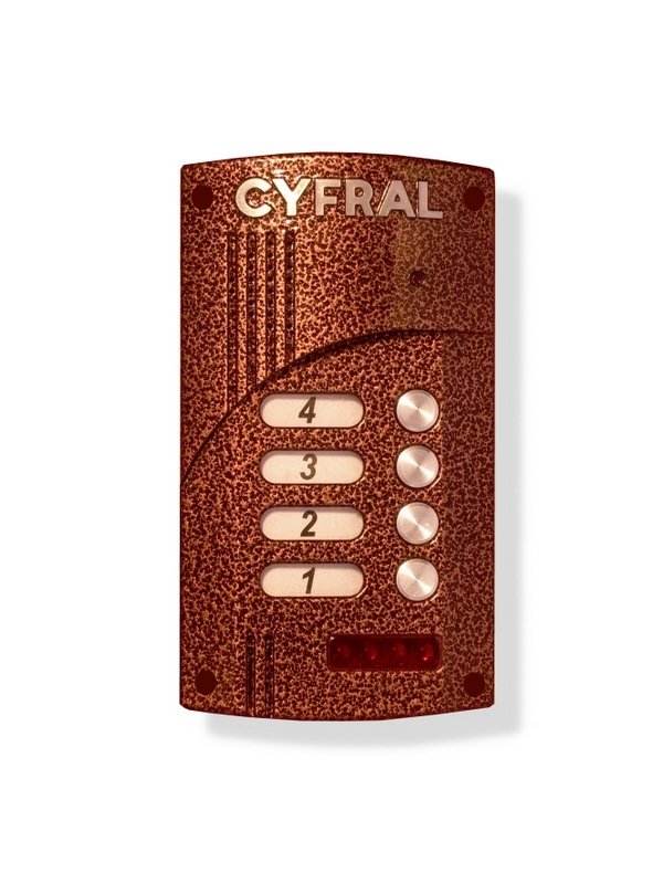 Накладная вызывная панель видеодомофона с прямой адресацией; до 4 абонентов; со встроенным коммутатором; подсветка адресных окон; встроенная телекамера (цветная, 380 ТВЛ, 0,01 люкс, PINHOLE); -40...+50°С