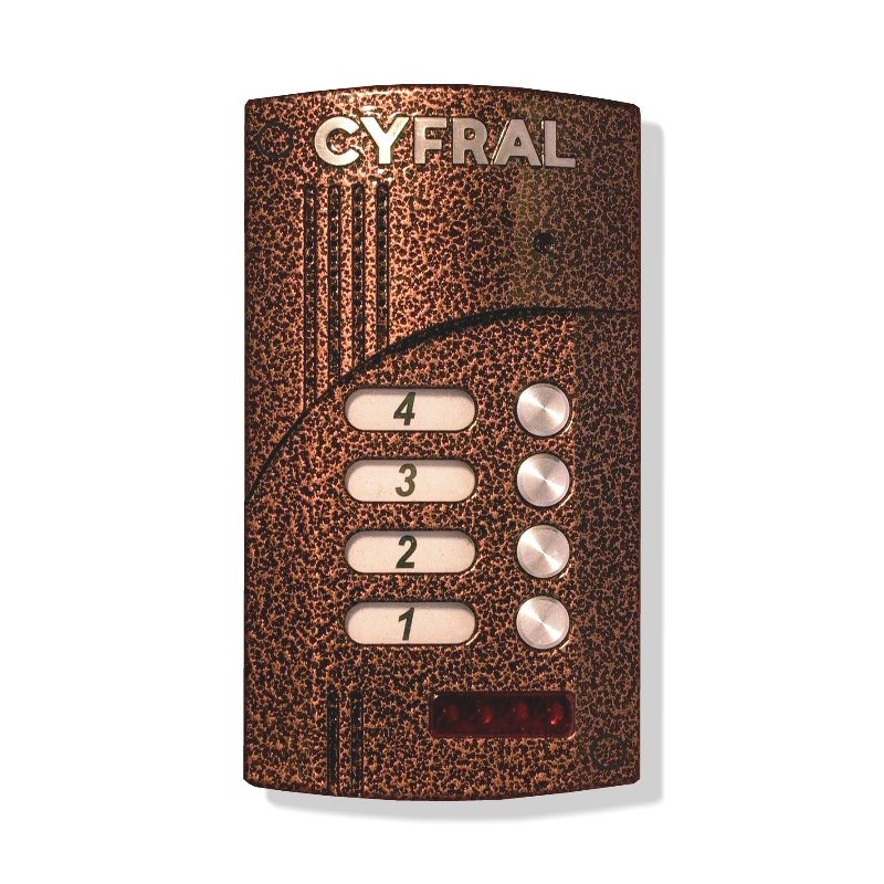 Накладная вызывная панель видеодомофона с прямой адресацией; до 4 абонентов; для работы по 4-х проводной линии связи с видеомониторами Commax, KOCOM, KENWEI, ЦИФРАЛ; подсветка адресных окон; встроенная цветная телекамера; -40...+50°С