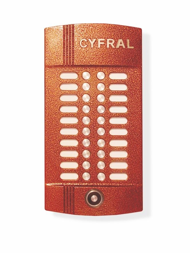 Врезная вызывная панель видеодомофона с прямой адресацией; до 20 абонентов; подсветка адресных окон; встроенный считыватель «Touch Memory» (без контроллера); встроенная телекамера (цветная, 380 ТВЛ, 0,01 люкс, PINHOLE); -40...+50°С