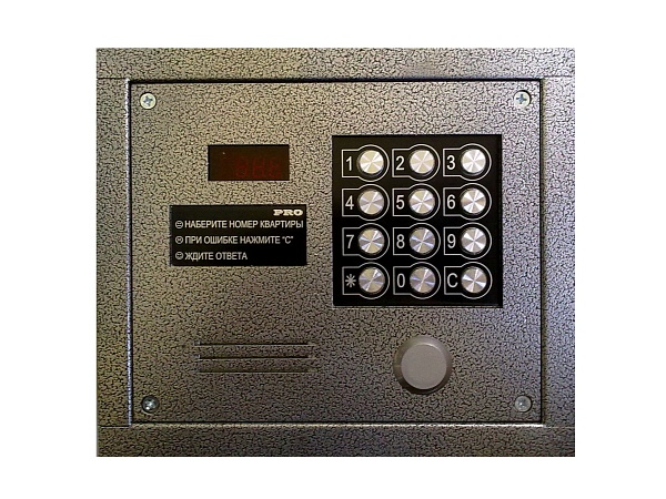 Многоабонентский аудио блок вызова с цифровой адресацией, моноблок (блок вызова + блок электроники), до 255 абонентов, считыватель EM-Marin, до 1000 ключей, трёхразрядная индикация, кнопочная клавиатура с подсветкой, встроенная схема размагничивания электромагнитного замка, врезной, 15 В, 0,3 А, 210х180х35 мм, -30...+40°C, серебряный антик.