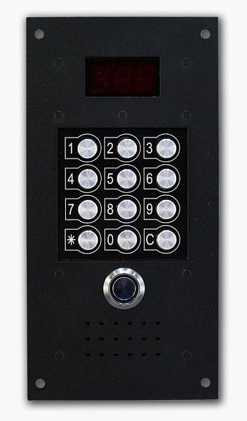 Многоабонентский аудио блок вызова с цифровой адресацией, до 255 абонентов (999 при работе с БКЗ-3А). Вводимые номера: от 1 до 999. Работа с идентификаторами DS1990A, функции *АНТИКЛОН* и *АВТОСБОР*, память ключей: 2044 (4092 или 8188 при замене микросхемы памяти). Постоянная светодиодная подсветка клавиатуры. Встроенная плата снятия остаточной намагниченности. U-пит.пост. 15 В, I-потр. 0,3 А (без учёта эл.магн. замка). t-раб. -30…+40°С, габ.размеры 220х110х32 мм. Цвет корпуса: чёрный (порошковое покрытие).