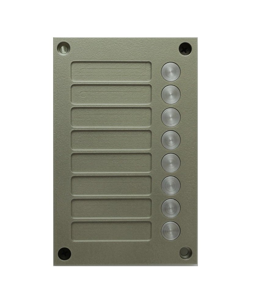 Кнопочная панель используется в комплекте с блоком вызова БВД-424FCB-1 Количество кнопок для вызова абонентов-8. Рекомендуется использовать совместно с монтажным комплектом МК-424-1 МК-424-2.