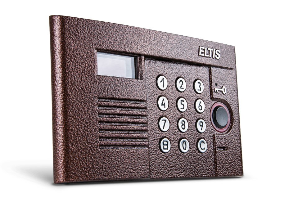 Блок вызова. 100 абон., 700 ключей RF, цв. в/камера pinhole, день/ночь, 650 ТВЛ, подсветка клавиатуры, защита от подбора кодов и паролей, окраска медь, горизонтальное исполнение, 210х125х40мм