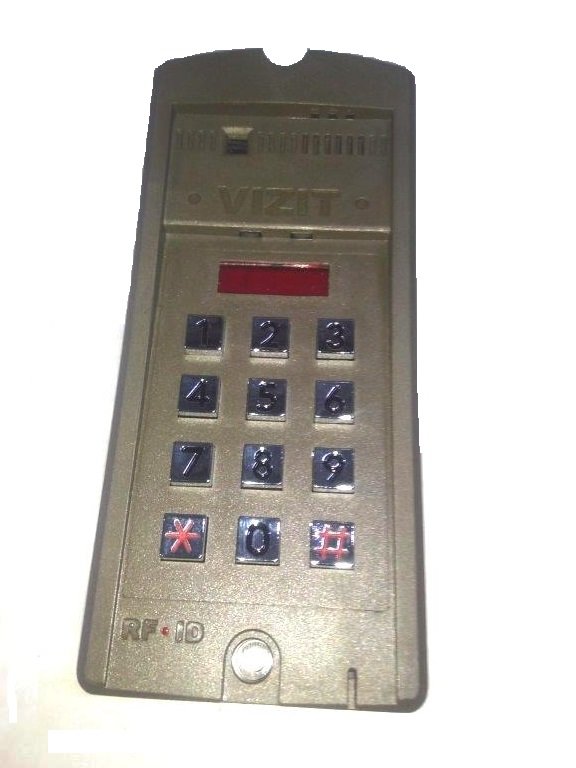 Блок вызова до 100 абонентов. Встроенный контроллер до 600 ключей VIZIT-RF2 (RFID-125 kHz брелок EM-Marin)). Возможность автоматической записи ключей - режим «Акцепт». Светодиодный дисплей. Подсветка клавиатуры. Корпус блока вызова выполнен из ударопрочного пластика "поликарбонат".