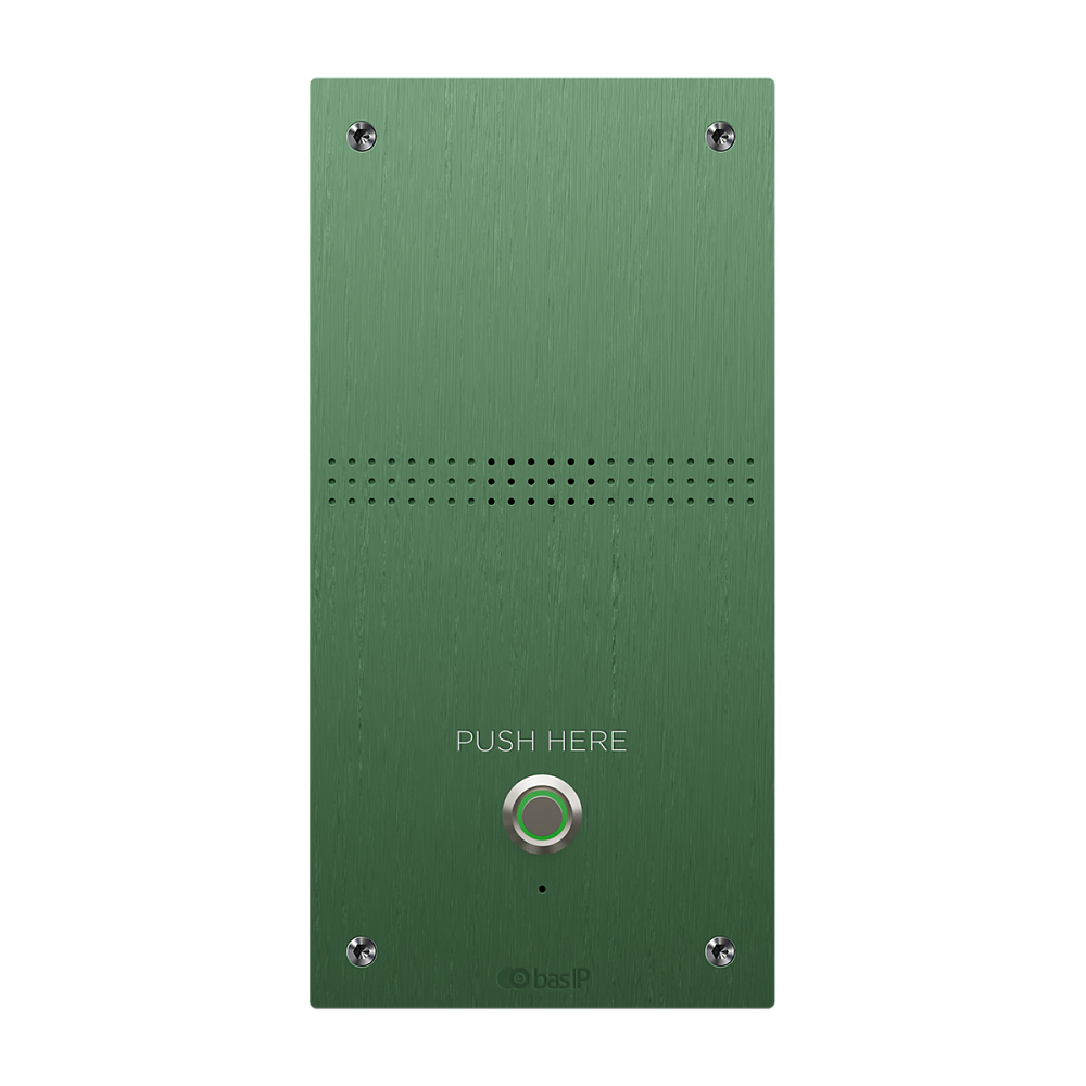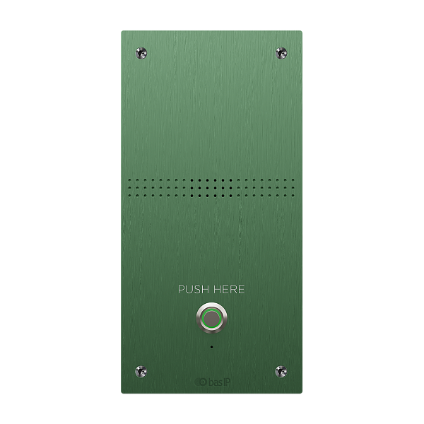 Специализированная вызывная аудио-панель. Врезной монтаж. IP65; -40...+70 °C. Питание PoE и + 12 В. Поддержка: SIP P2P, RS485, кнопка выхода, датчик двери. Механическая кнопка вызова с подсветкой вызова с подсветкой (белая - режим ожидания, зеленая - режим вызова и разговора). Встроенное реле для управления замком. 95×190×27 мм. Цвет - зеленый.