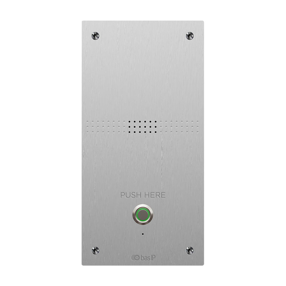 Специализированная вызывная аудио-панель. Врезной монтаж. IP65; -40...+70 °C. Питание PoE и + 12 В. Поддержка: SIP P2P, RS485, кнопка выхода, датчик двери. Механическая кнопка вызова с подсветкой вызова с подсветкой (белая - режим ожидания, зеленая - режим вызова и разговора). Встроенное реле для управления замком. 95×190×27 мм. Цвет - серебро.