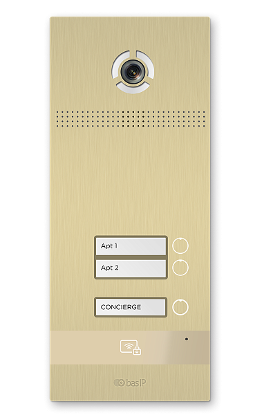 Вызывная панель на 2 абонента. Поддержка технологии "UKEY": считывание карт, брелоков и мобильных идентификаторов по стандартам EM-Marin, Mifare Plus и Mifare Classic, Bluetooth, NFC. 3D идентификация по распознаванию лиц - 6000 лиц. Память до 10 000 идентификаторов или карт. IP камера: 1.3 Мп, 1/4” CMOS, угол обзора 117°. Врезной/накладной монтаж. Степень защиты: IP 65. Температурный режим: -40...+ 65 °C. Пьезоэлектрические кнопки вызова, отдельная кнопка вызова консьержа. Встроенное реле. Питание: PoE и +12 В. Поддержка SIP, P2P, Wiegand 26, 32, 34, 37, 40, 42, 56, 58, 64, RS485. Размер: 379×158×49 мм. Цвет - золото. Гарантия - 5 лет.