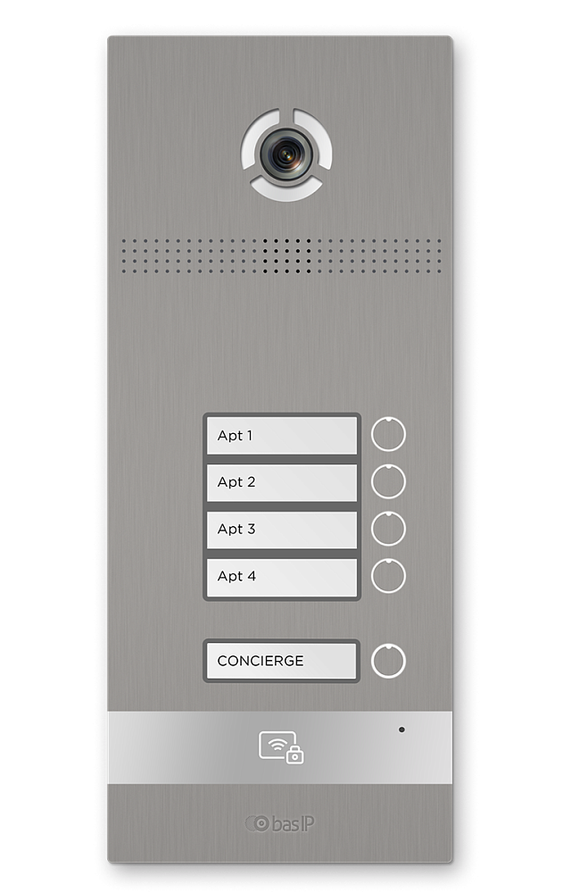 Вызывная панель на 4 абонента. Поддержка технологии "UKEY": считывание карт, брелоков и мобильных идентификаторов по стандартам EM-Marin, Mifare Plus и Mifare Classic, Bluetooth, NFC. 3D идентификация по распознаванию лиц - 6000 лиц. Память до 10 000 идентификаторов или карт. IP камера: 1.3 Мп, 1/4” CMOS, угол обзора 117°. Врезной/накладной монтаж. Степень защиты: IP 65. Температурный режим: -40...+ 65 °C. Пьезоэлектрические кнопки вызова, отдельная кнопка вызова консьержа. Встроенное реле. Питание: PoE и +12 В. Поддержка SIP, P2P, Wiegand 26, 32, 34, 37, 40, 42, 56, 58, 64, RS485. Размер: 379×158×49 мм. Цвет -серебро. Гарантия - 5 лет.