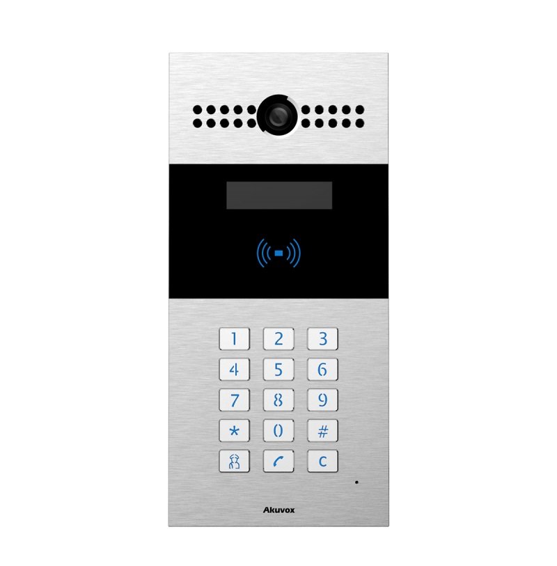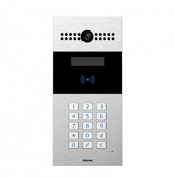 Многоабонентская аудио/видео SIP-панель с клавиатурным блоком, 12/РоЕ, IP65, камера до 3Мп, считыватель RF карт, ЖК-дисплей с подсветкой, для накладного монтажа. Полная совместимость с SIP стандартом для подключения к любой АТС, IP-телефону или софтфону.