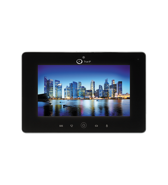 7” LCD, сенсорный, емкостной, 1024х600; встроенная камера; WiFi; Hands Free; накладной монтаж; Linux, SIP, TCP/IP, RTSP, ONVIF; 5 сенсорных кнопок быстрого управления; запись фото и видео вручную; журнал событий; автоснимок посетителя (при звонке); просмотр дополнительных камер во время вызова; видеоинтерком; слот для microSD до 32 Gb для видео, фото, сообщений; питание: POE (802.3af), DC 12 В; ожидание - 1 Вт; работа — 7 Вт; подключение до 20 WiFi панелей и до 32 IP камер WiFi или проводных; переадресация вызова; прием текстовых сообщений; -10...+50 °С; 215×140×21 мм; цвет черный