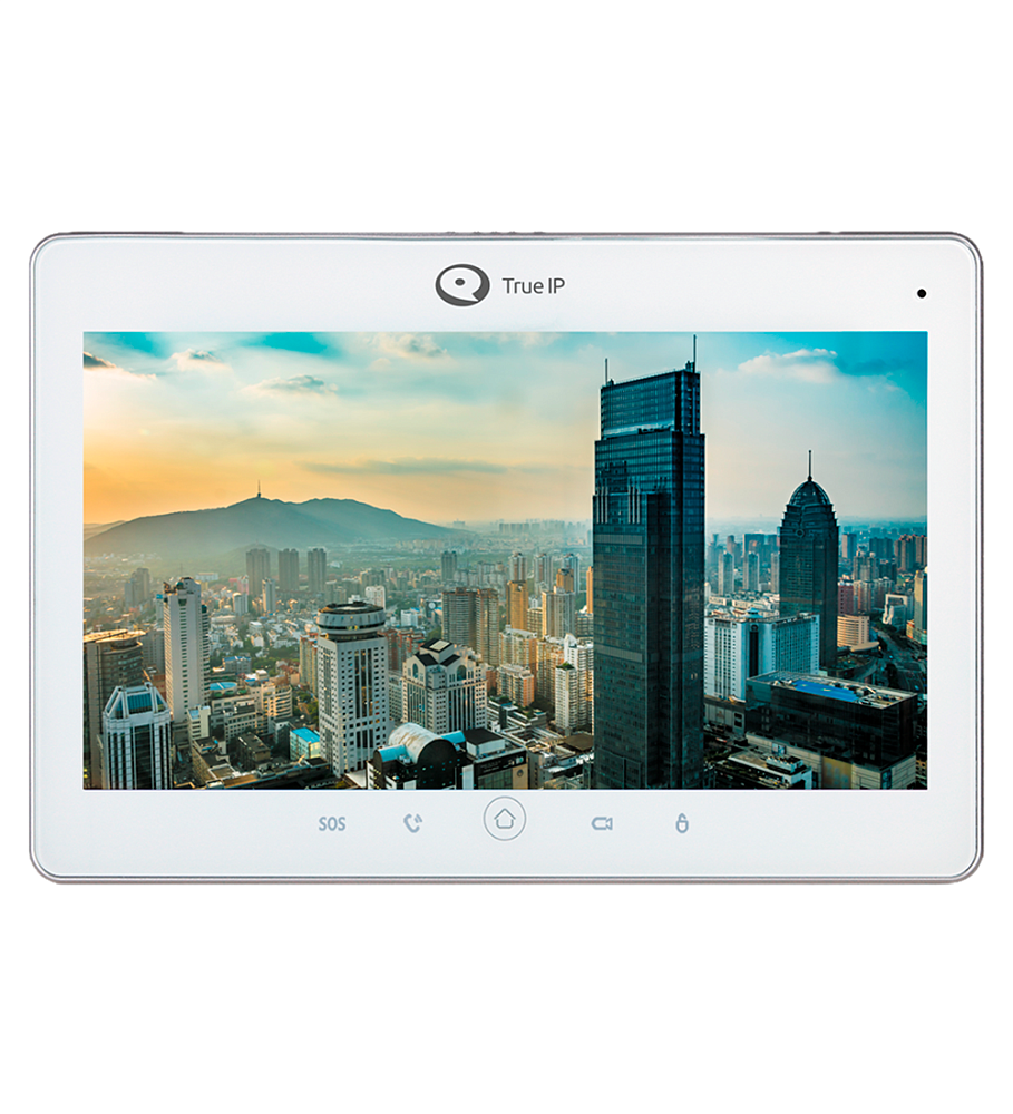 10” LCD, сенсорный, емкостной, 1024х600; WiFi; Hands Free; накладной монтаж; Linux, SIP, TCP/IP, ONVIF, DTMF, RTSP; 5 сенсорных кнопок быстрого управления; запись фото и видео вручную; журнал событий; автоснимок посетителя (при звонке); просмотр дополнительных камер во время вызова; интерком; microSD 8 Gb для видео, фото, сообщений в комплекте; питание: POE (802.3af) или DC 12 В; ожидание - 2 Вт; работа — 8 Вт; подключение до 20 панелей и до 32 IP камер (WiFi или проводных); переадресация вызова; прием текстовых сообщений; -10...+50 °С; 265×180×23 мм; цвет белый