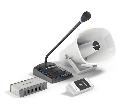 Переговорное 4+1-канальное устройство клиент-кассир для АЗС с системой громкого оповещения, встроенный усилитель, линейный выход для записи переговоров, дуплекс с ручным переключением в СИМПЛЕКС, сенсорное управление, подсветка микрофона. в комплекте: пульт кассира, антивандальная панель клиента с КНОПКОЙ ВЫЗОВА, угловое крепление панели, рупорный громкоговоритель 15 Вт с кабелем 15 м, блок питания. 12 В, 1250 мА, -40...+50 °C, пульт кассира 120х140х40 мм, панель клиента 45х110х20 мм, коммутатор 130х75х30 мм