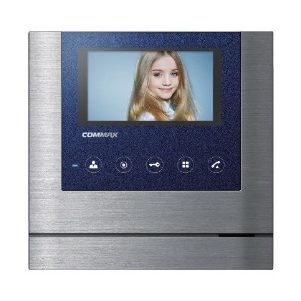 CDV-43M, дополнительно вызов аудио/видео (при наличии камеры) от цифрового подъездного домофона + 3-х вызывных блоков и 1-й камера наблюдения, 180х180х28 мм, синий