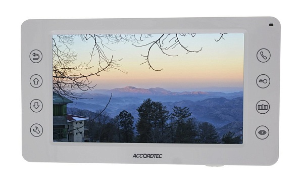 Цветной 4-x проводный, 7" LCD TFT (800х480) видеодомофон. Подключение двух вызывных панелей и двух видеокамер. Загрузка собственных мелодий MP3 в качестве сигнала вызова домофона. Запись видеороликов входящего вызова со звуком. Запись производится на microSD карту или во встроенную память (64 кадра) в автоматическом или ручном режимах, и по детектору движения. Поддержка micro SD карт (8Гб-32Гб). Функция "интерком". Накладной тип крепления. Габаритные размеры: 210 х 115 х 25 мм. Цвет корпуса белый. Питание AC220V.