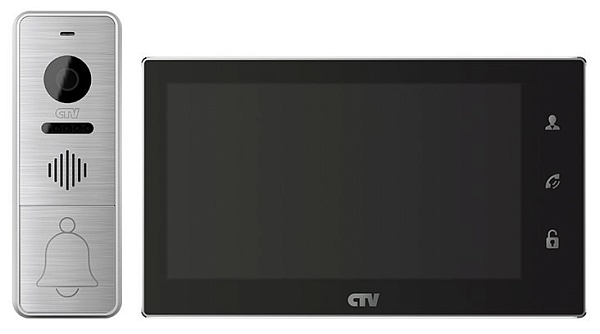 Комплект видеодомофона в одной коробке (вызывная панель CTV-D400FHD и монитор CTV-M4706AHD), поддержка формата Full HD, монитор с экраном 7", Hands free, детектор движения, технология Touch Screen для управления OSD, панель из стекла с сенсорным управлением "Easy buttons", встроенная память, micro SD (до 64ГБ), переключение стандартов 1080p/720p/960H, встроенный источник питания, подкл до 2 вызывных панелей и 4 мониторов, цвет корпуса - чёрный.