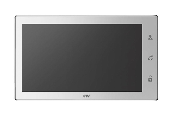 Монитор цветного видеодомофона 10˝ TFT IPS LCD (16:9), сенсорный, разрешение 1024x600, Hands free, встроенный детектор движения на 4 канала, поддержка 2 МП AHD/TVI/CVI/CVBS, встроенный модуль Wi-Fi, LAN, мобильное приложение ОС Android, iOS. Встроенный источник питания, подключение до 2-х вызывных панелей, 2-х дополнительных видеокамер (в т.ч. IP), 2-х датчиков тревоги, до 4-х мониторов в интеркоме, 264,8x157,8x25,3 мм, цвет корпуса - белый.