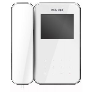 Монитор видеодомофона, цветной LCD TFT 3,5", PAL/NTSC, трубка на магните, сменные полифонические мелодии вызова, сенсорные кнопки, 2 входа для вызывных панелей и видеокамер, возможность подключения дополнительной аудиотрубки Kenwei, встроенный блок питания АС220, габариты 146х173х32 мм, масса 0,35кг, цвет-белый
