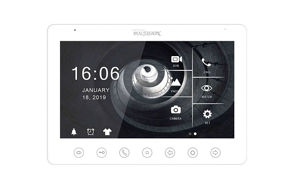 Домофон 10.1"; Сенсорные кнопки; разрешение 1024(Г)x600(В); форматы CVBS/AHD; 800ТВЛ/720P/1080P; Подключение: 2 выз. панели, 2 камеры, до 4-х мониторов в параллель; встроенная память (фото 100шт); поддержка карт памяти MicroSD до 128Гб, запись с камер по движению (DVR), AC 100-220В (встроенный БП), 255x180x21мм