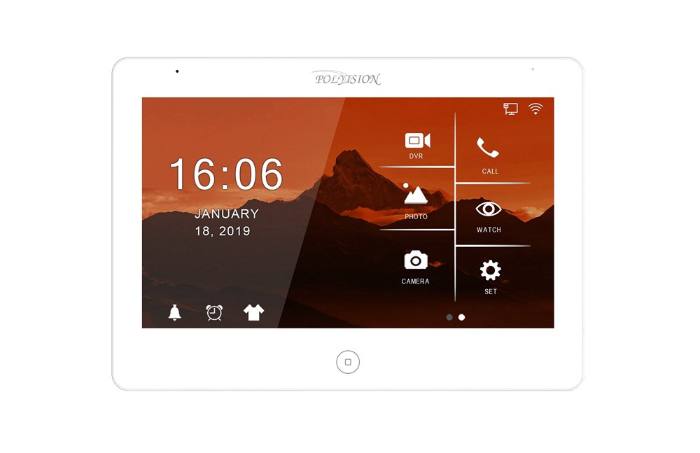 Домофон 10.1"; Сенсорный экран; разрешение 1024(Г)x600(В); форматы CVBS/AHD; 800ТВЛ/720P/1080P; Подключение: 2 выз. панели, 2 камеры, до 4-х мониторов в параллель; встроенная память (фото 100шт); поддержка карт памяти MicroSD до 128Гб, запись с камер по движению (DVR), WiFi 2,4 ГГц; Lan 10/100Мбит; AC 100-220В (встроенный БП), от внешнего БП DC 15В, размер 255x180x21мм