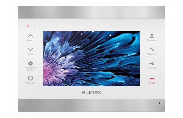 Монитор домофона цветной, 7" TFT LCD 16:9, PAL/NTSC, разрешение экрана 800х480, до 2-х вызывных панелей, 2 видеокамер, интерком до 4-х мониторов (SL-10IP, SL-10M, SL-10, SL-07IP, SL-07M, SL-07, SQ-07M, SQ-07, SM-07M, MS-04, SM-04M. SL-07IP и SL-10IP должны быть только основными в интеркоме), запись фото и видео на microSD карту (до 32 ГБ), 12 полифонических мелодий, 3 временных режима уровня громкости, вывод изображения на ТВ, питание ~110-240 В или 12 В, 230х165х22мм. Рекомендуется использовать с ML-15HR и ML-16. Цвет - серебро + белый