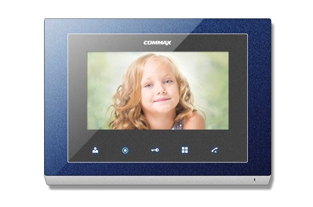 7" TFT LCD, PAL/NTSC, накладное крепление, до 2-х вызывных панелей, дополнительная аудиотрубка DP-4VHP, вызов и связь "трубка-монитор", возможно использование в  многоквартирной системе MODUM, 110-240 В, цвет синий