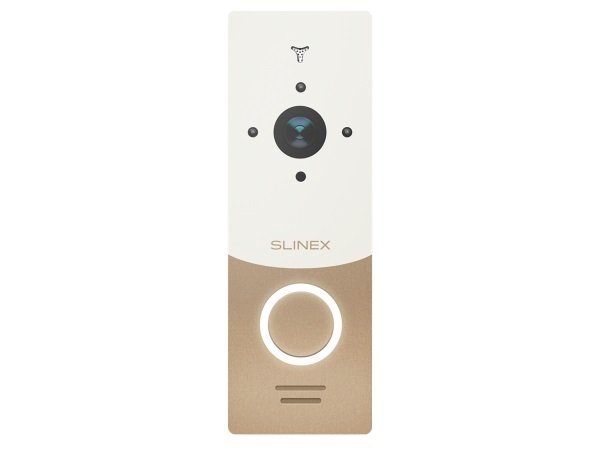 AHD вызывная видеопанель, цветная матрица CMOS, разрешение 2.0 МП (AHD)/960 ТВЛ (CVBS), угол обзора 115° (по гор.), минимальная освещенность: 0,01 Люкс (ИК подсветка до 1,5 м), механический ИК фильтр, подсветка кнопки, отдельный вывод питания видеокамеры для возможности записи на видеорегистратор, IP65, -40...+50 °С, 130×45×24 мм. Цвет - золото+белый