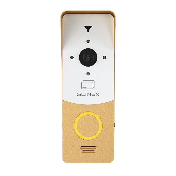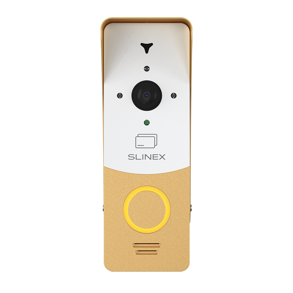 Вызывная видеопанель со встроенным контроллером и считывателем бесконтактных карт EM-Marin. Матрица 1/2,9” CMOS, разрешение AHD 1080p (2 Мп), AHD 720p (1 Мп) или CVBS (PAL), угол обзора: 115° по горизонтали, минимальная освещенность: 0,01 Люкс (ИК подсветка до 1,5 м). Кнопка переключения форматов камеры. Механический ИК фильтр. Подсветка кнопки. Количество идентификаторов: 248 шт. Выход Wiegand-26. Класс защищенности: IP65, температура эксплуатации: -40...+50 °С. Питание: +12 В (БП в комплекте). Размеры: 130×45×24 мм. Цвет - золото+белый