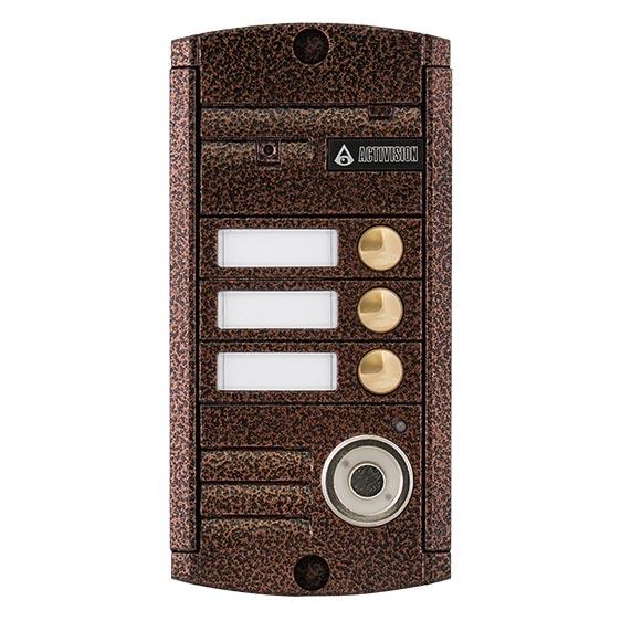 Вызывная видеопанель на 3 абонента со встроенным считывателем Touch Memory, накладная, 4-х проводная, 1000 ТВЛ, ИК-подсветка, память на 1005 ключей, питание 12 В, -50…+50°C, IP55, 140х70х20 мм, цвет медь