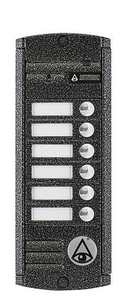 Вызывная видеопанель на 6 абонентов, накладная, 4-х проводная, 1000 ТВЛ, ИК-подсветка, питание 12 В, -50…+50°C, IP55, 185х70х20 мм, цвет серебро