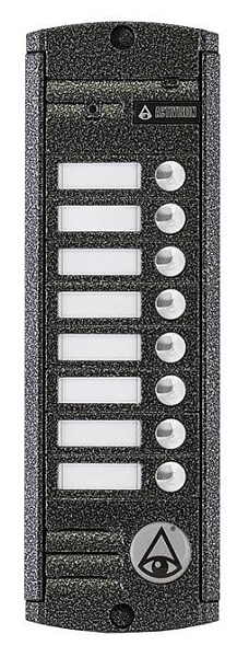 Вызывная видеопанель на 8 абонентов, накладная, 4-х проводная, 1000 ТВЛ, ИК-подсветка, питание 12 В, -50…+50°C, IP55, 215х70х20 мм, цвет серебро