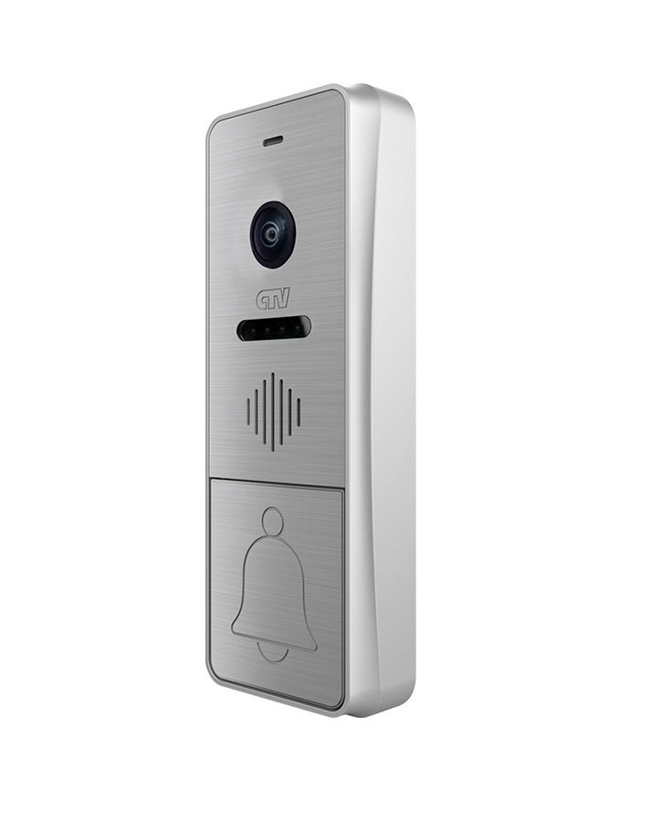 Вызывная панель видеодомофона, объектив fish eye, ИК-фильтр для "ночного" режима, подсветка кнопки вызова, блок управления замком (БУЗ) и уголок в комплекте, цв. серебро