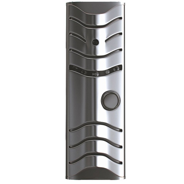 Вызывная панель видеодомофона, накладная. Цветная камера CMOS 1/3 дюйма, PAL, угол обора 90°, 700 твл, ИК подсветка (2м), -40 +50°С. Настройка громкости динамика и микрофона. Уголок, козырек в комплекте. Защита от негативных воздействий при уличной эксплуатации, влаги и конденсата, 130х40х23 мм.