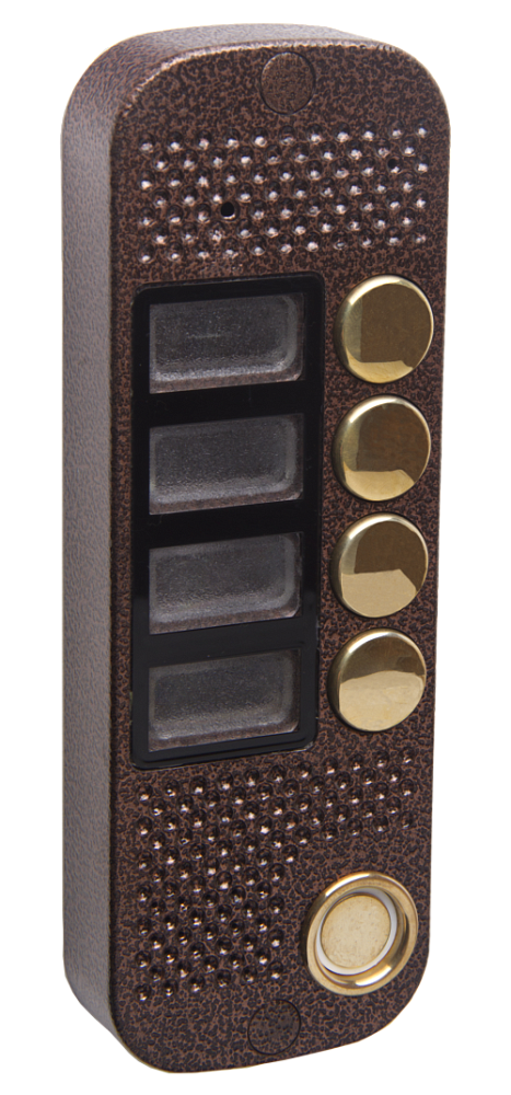 Вызывная видеопанель, цветная на базе CMOS-матрицы 1/3" с разрешением 700 твл, 0,01 Lux, угол обзора 70х52, ИК подсветка (1м). Подсветка кнопки вызова.