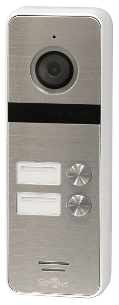 Вызывной блок видеодомофона на 2 абонента, 600 ТВЛ, угол обзора 130°, 4-х проводная линия связи, ИК подсветка, 133х48х18 мм, серебряный