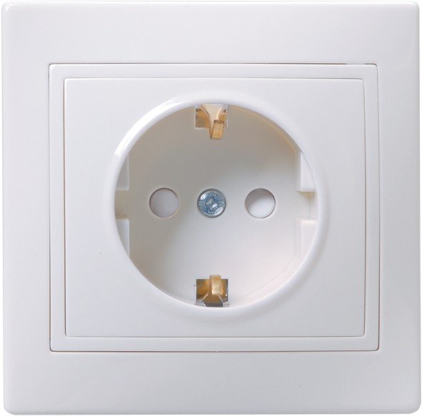 Розетка 1-местная с заземляющим контактом с защитной шторкой КВАРТА; U-ном.250В, I-ном.16А; IP20, t-раб.-25...+40°С, 81.5х80.5х42.5мм. Белого цвета.