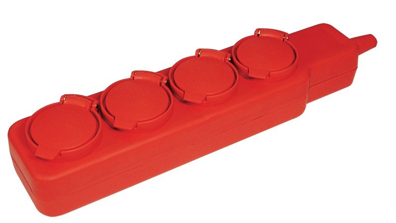 Удлинитель, 4 розетки с защитными крышками, IP44, 2Р+PE, длина провода 5 м, марка провода ПВС, сечение провода 3х1 кв.мм, максимальная нагрузка 3.5 кВт, напряжение 250В, оранжевый