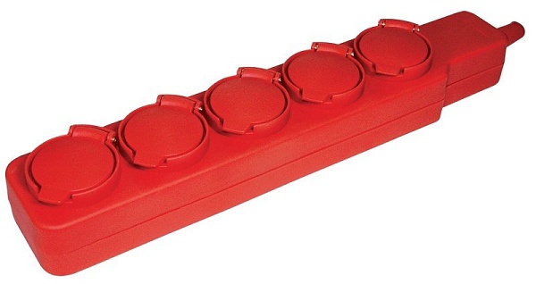 Удлинитель, 5 розетки с защитными крышками, IP44, 2Р+PE, длина провода 5 м, марка провода ПВС, сечение провода 3х1 кв.мм, максимальная нагрузка 3.5 кВт, напряжение 250В, оранжевый