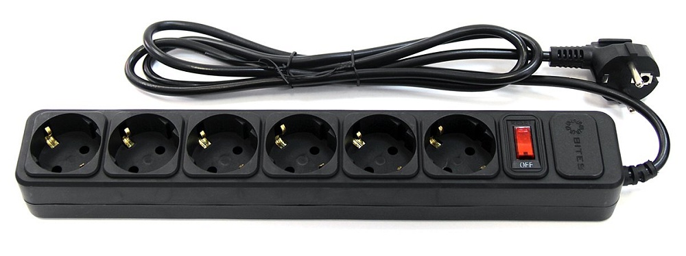 Сетевой фильтр с выключателем со световой индикацией, 6 розеток EURO, 3х0.75 мм2, 2.2 кВт, 10А, 3 м.
