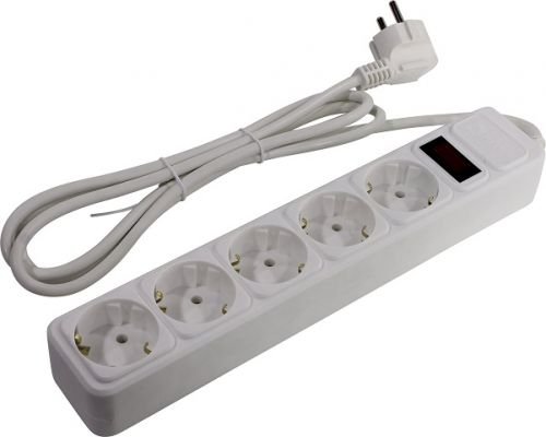 Сетевой фильтр с выключателем со световой индикацией, 5 розеток EURO, 3х0.75 мм2, 2.2 кВт, 10А, 3 м.