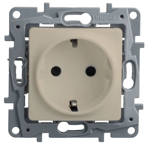 Розетка ETIKA 2П+З 16А 250В немецкого стандарта с защитными шторками. Подключение проводов - винтовое. Цвет - слоновая кость.