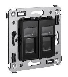 Розетка RJ-45 в стену серии Avanti, двойная, экранированная, категория 5e, 70,9х70,9х43,7 мм, не содержит галогенов, цвет черный