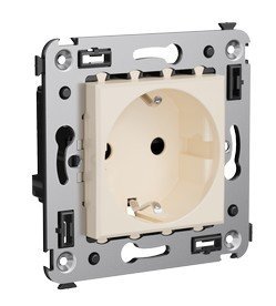 Розетка в стену, 2P+E, с закрывающимися шторками серии Avanti, IP20, номинальное напряжение 220...250 В, номинальный ток 16 А, 70,9х70,9х43,7 мм, цвет бежевый