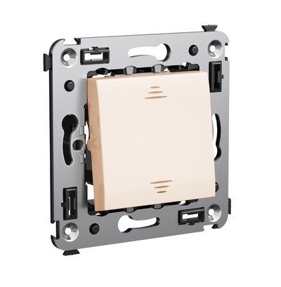 Переключатель одноклавишный в стену серии Avanti, номинальное напряжение 210...230 В, номинальный ток 16 А, светодиодная (LED) подсветка, 70,9х70,9х43,7 мм, не содержит галогенов, цвет слоновая кость/кремово-белый