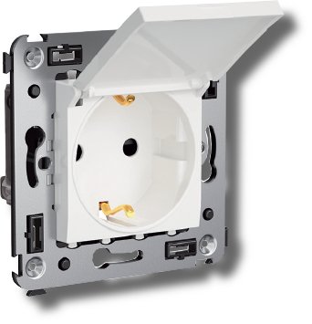 Розетка с крышкой в стену, 2P+E серии Avanti, IP41, номинальное напряжение 220...250 В, номинальный ток 16 А, 70,9х70,9х43,7 мм, цвет белый