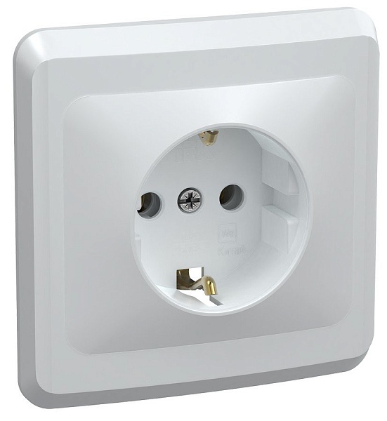 Розетка 1-местная с заземляющим контактом без защитной шторки ВЕГА; U-ном.250В, I-ном.16А; IP20, t-раб.-25...+40°С, 81х80.5х45мм. Белого цвета.