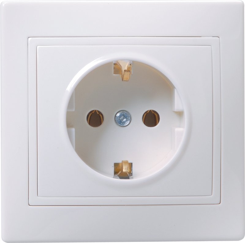 Розетка 1-местная с заземляющим контактом без защитной шторки КВАРТА; U-ном.250В, I-ном.16А; IP20, t-раб.-25...+40°С, 81.5х80.5х42.5мм. Белого цвета.