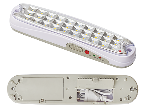 Светильник аварийного освещения светодиодный непостоянного действия; 30 SMD светодиодов, мощность источника света 1.5 Вт, световой поток 80 Лм; U-пит.187...242В, P-потр.0.6 Вт, встроенный Li-ion АКБ 3.7В, емкостью 1200 мАч, защита аккумулятора от глубокого разряда и перезаряда, время свечения - до 6 часов; t-раб.0...+40°С, 270х68х55мм , 0.39кг