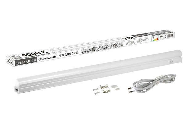 Светильник накладной линейный светодиодный, мощность 7 Вт, световой поток 560 Лм, цветовая температура 4000 K, U-вх. 180...265 В, IP40, t-раб.–10...+40°C, габ.размеры 568×22×34 мм.