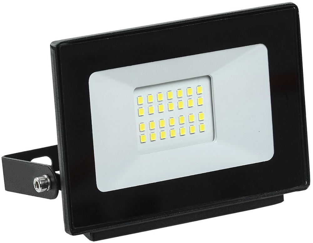Прожектор светодиодный 20 Вт, световой поток 1600 лм; цветовая температура 6500 К; угол светового пучка 110°, U-пит. 200…240 В/50 Гц, IP65, t-раб. -40…+50°С, габ.размеры 134х24х108 мм, алюминиевый корпус, черный.