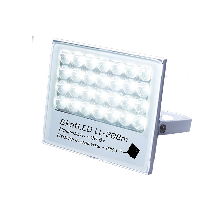 Прожекторный светильник; световой поток 2000 лм, цветовая температура 5500 К, угол раскрыва 8°; U-пит.198...242 В, P-потр.20 Вт; IP65, t-раб.-40...+40°С, 160х140х35 мм, 0.70 кг